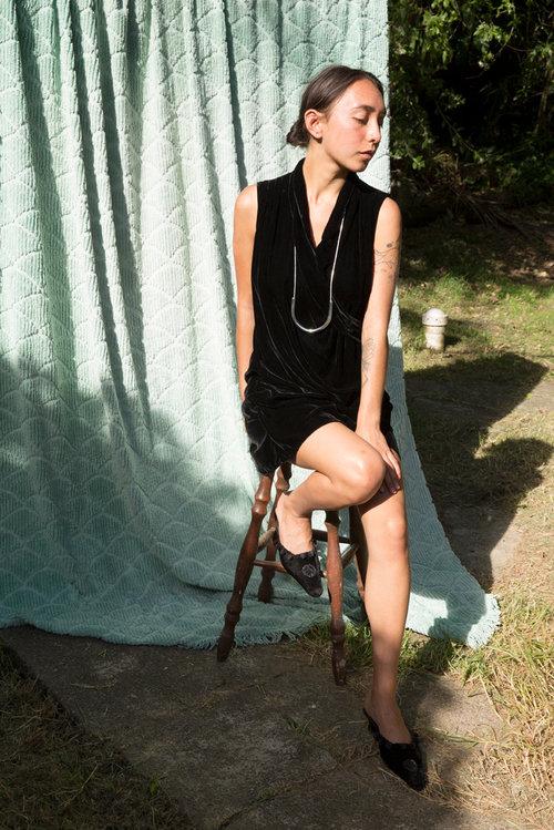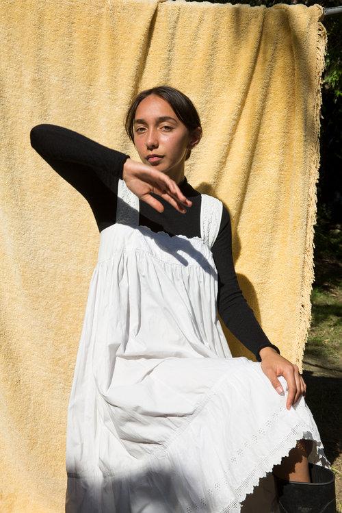 "I started making clothes out of vintage fabrics as a teenager in Wellington after working for Rae Carroll after school in Whanganui in the 80’s. I was kicked out of home and getting into boys, music and boozing . I then left New Zealand and toured with SUNN0))) who were very inspiring in following your dream no matter the frequency. I left to make underwear.... in looking for inspo I found so much amazing historic clothing that I just started reselling. Etsy had just started and I had a friend who made videos for them, so I was one of their first sellers and I did something the others weren't doing - curating collections and telling stories. The styling followed naturally but selling is my fave; I don't collect, I unleash"