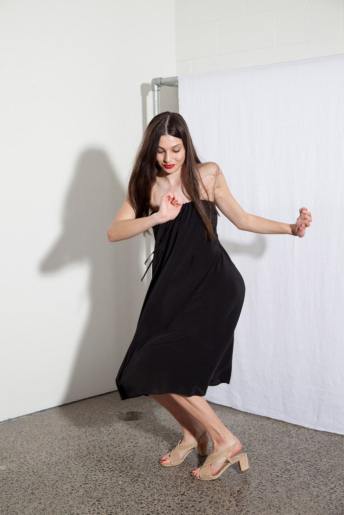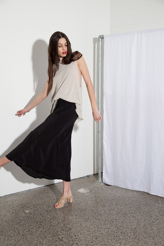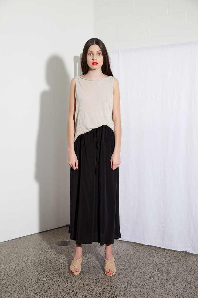 A very full and flouncy fully bias-cut ankle length skirt. Beautifully finished with a dainty drawstring at the waist. Can be worn tied at the waist or hip or even tied at the bust and worn as a dress.