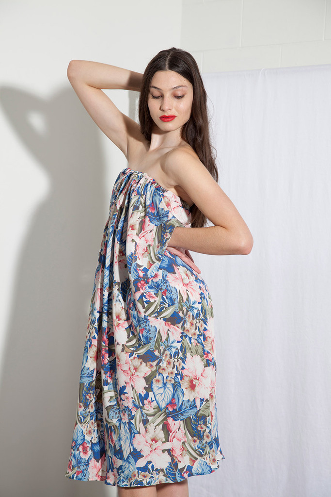 A very full and flouncy fully bias-cut ankle length skirt. Beautifully finished with a dainty drawstring at the waist. Can be worn tied at the waist or hip or even tied at the bust and worn as a dress.