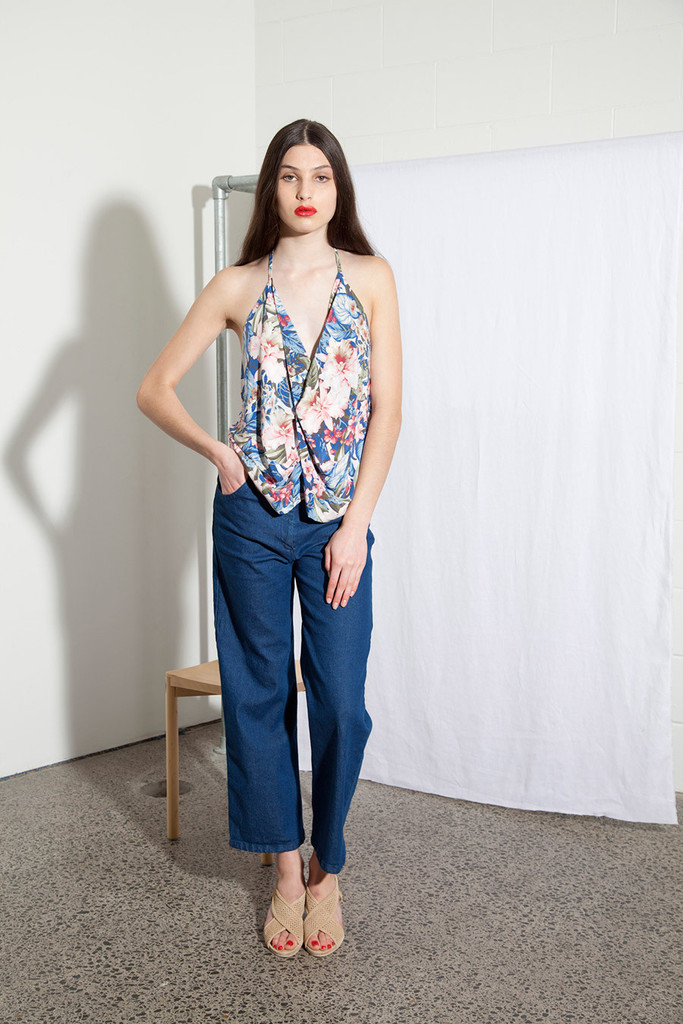 A beautiful new signature Miss Crabb silk camisole top. Simply tied up around the neck with a low cut back the diamond cut draping gives this top a unique and effortless fit.