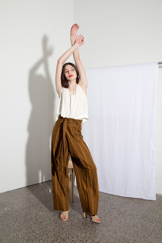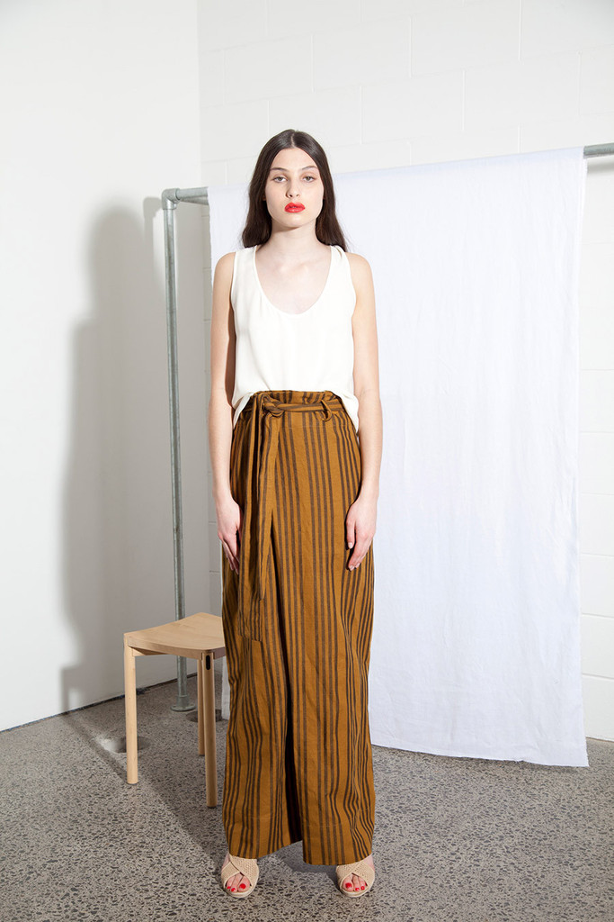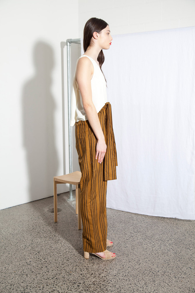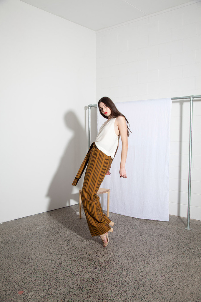 The most voluminous trousers to grace the style and times of Miss Crabb! Very simple and very drapey, the trousers are very strong and feminine and fastened simply with a large pleat and buttons at the waist. Paired with the matching linen sash tried at the waist these trousers have a singular new look and feel.