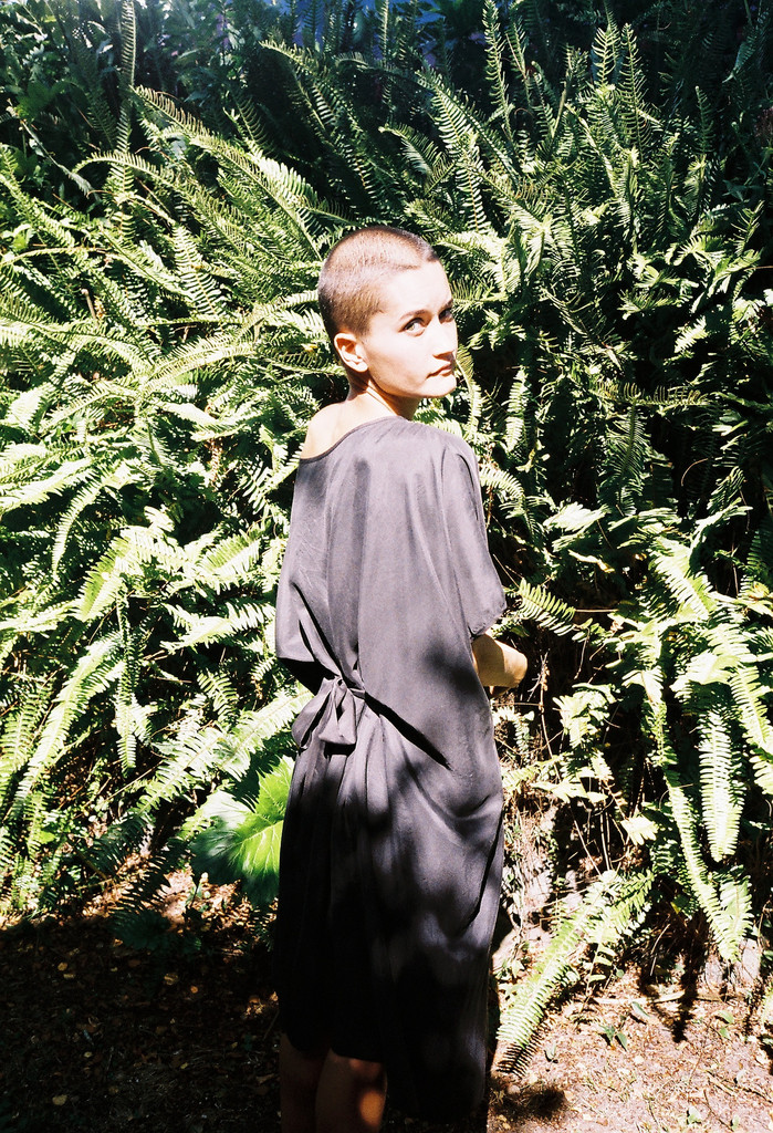 A very simple silk dress with would-be cap sleeves. This dress features tie holes at the waist for internal tying and shaping options, with the matching silk sash.
