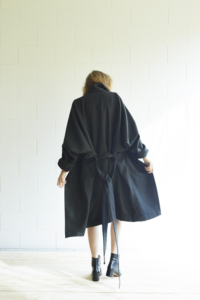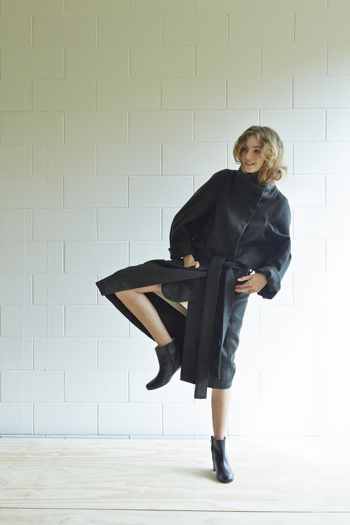 A classic Miss Crabb wool coat first made in 2007. It had a very distinct silouette which is both timeless and modern, its almost like being swathed in an exquisite blanket.