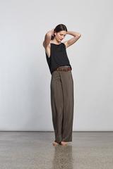 A beautifully classic, natuarally waisted trouser made in very soft wool with small front pleats. The trousers feature front pockets and two back welt pockets and waist band with belt loops. A flattering straight cut, slightly tapered leg finishing at the ankle - a wonderful new Miss Crabb trouser style.