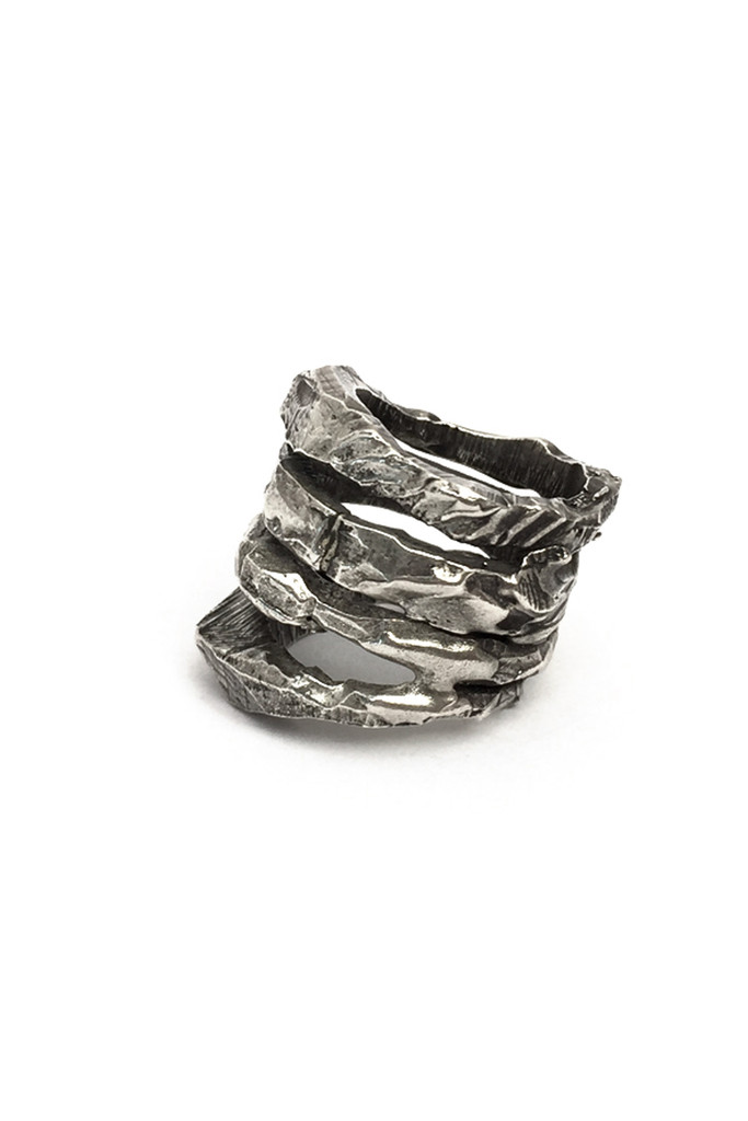Oxidised sterling silver ring. Four hand carved stacking rings fused into one. Each stacking ring is hand carved and one of a kind.